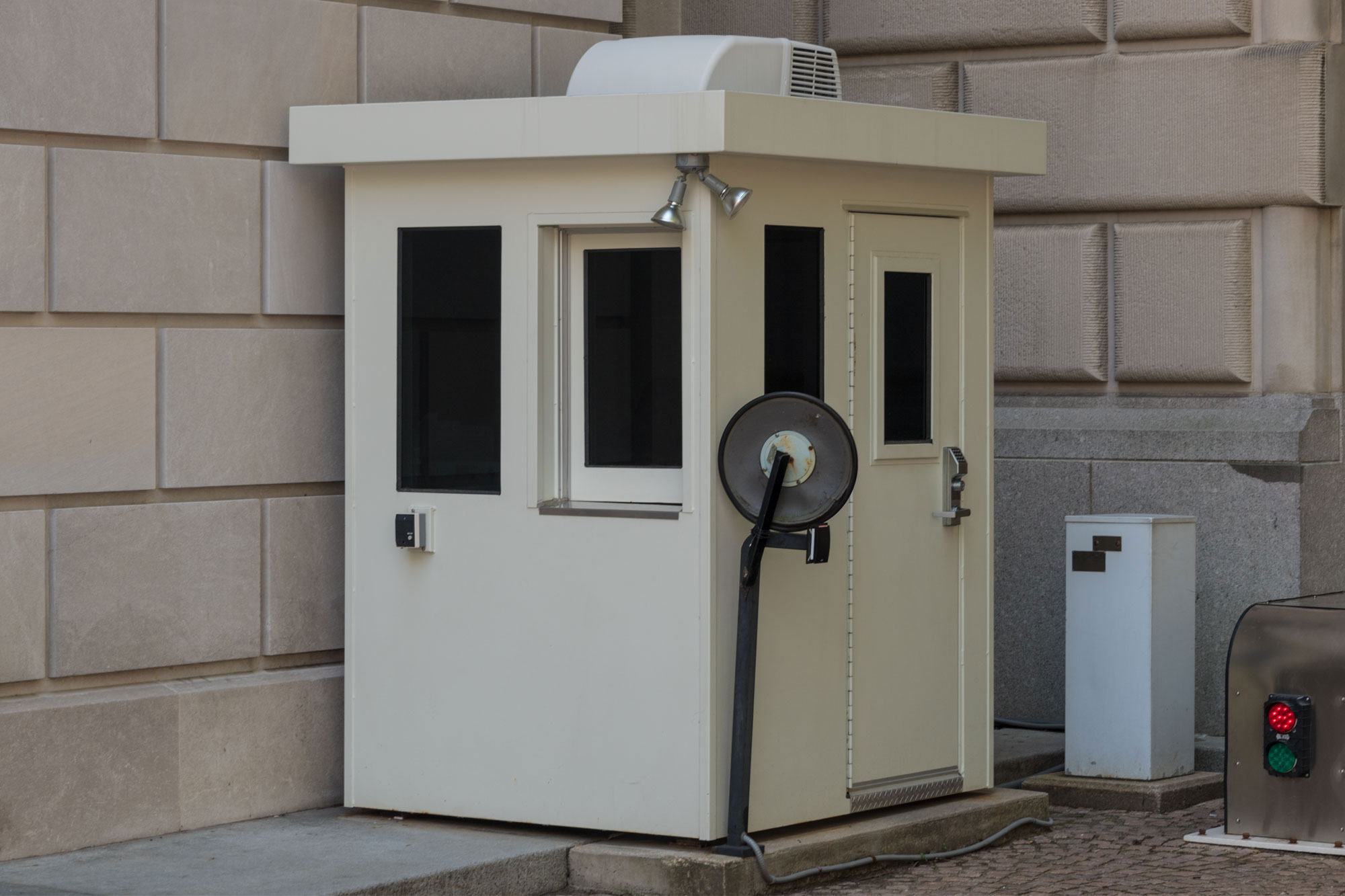This 5/x6/ Par-Kut security booth includes tinted a bullet resistant hinged steel door with a hydraulic closer and lockset, ballistic windows in all four sides, and hardened steel plate walls. The bullet resistant security booth is painted off while in a textured satin finish. The security booth also embraces a heavy welded steel tube frame with a solid steel roof for weathertightness in addition to lift rings in the top for portability and offloading.